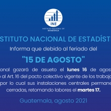 Población En esta sección puede encontrar la población actual (proyecciones) y otros datos Precios Precios de Referencia Índice de Precios al Consumidor Índice de Precios de Materiales de Construcción SEN Documentación del Sistema Estadístico Nacional Otras Estadísticas Accede a las diversas estadísticas: nacimientos, defunciones, entre otras Indicadores Principales Canasta Básica Alimentaria Canasta Ampliada Ínflación Jovenes con Empleo Población Economicamente Activa Noticias 13 noviembre, 2021 Asueto Día del… Leer Mas 15 agosto, 2021 Asueto del 15… Leer Mas 22 julio, 2021 Información RENAP Leer Mas 20 julio, 2021 Inicia Cartografía en… Leer Mas 01 julio, 2021 Inicia cartografía para… Leer Mas 25 junio, 2021 Nacimientos por estado… Leer Mas 25 junio, 2021 Nacimientos por grupos… Leer Mas 25 junio, 2021 Nacimientos por pueblo… Leer Mas Posts not found Cursos en línea Verificador de Personal Comunicados Convocatorias de empleo